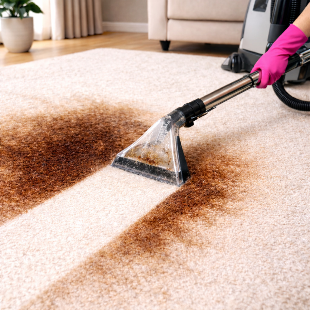 2. Grundig støvsugning – Fjerner støv og overfladisk snavs, så tæppet er klar til dybderens.